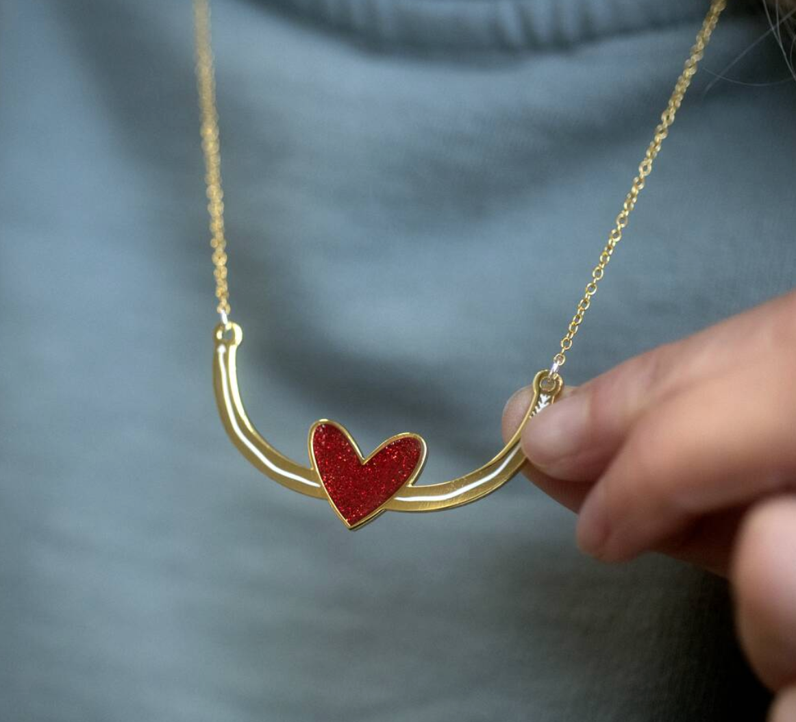 This stylish gold coloured necklace with glitter red heart is the perfect stocking filler or secret santa gift.